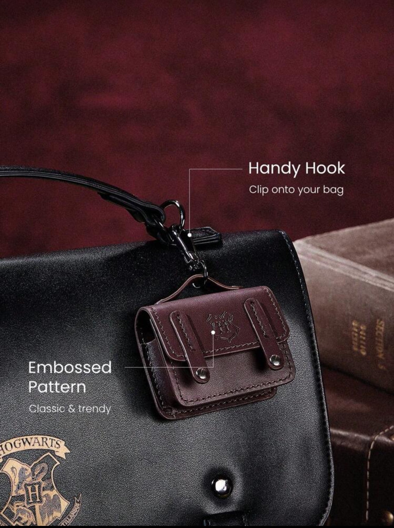 تخزين سماعات الآذن حقيبة هاري بوتر harry potter 🪄🦉الآذن بشعار أكواخ هوجوارتس من جلد مصنع،مناسبة للرياضة والسفر والاستخدام اليوم
