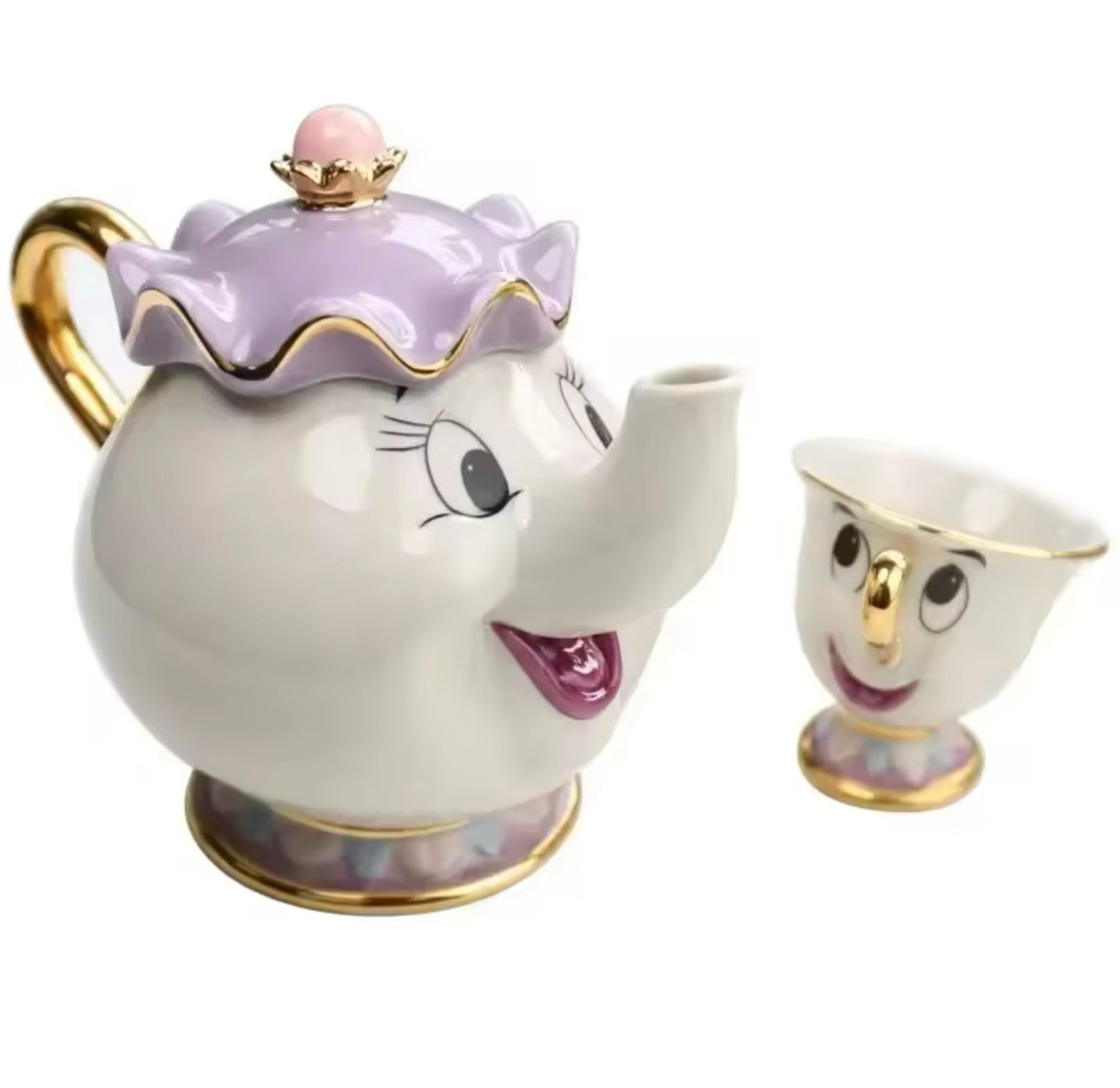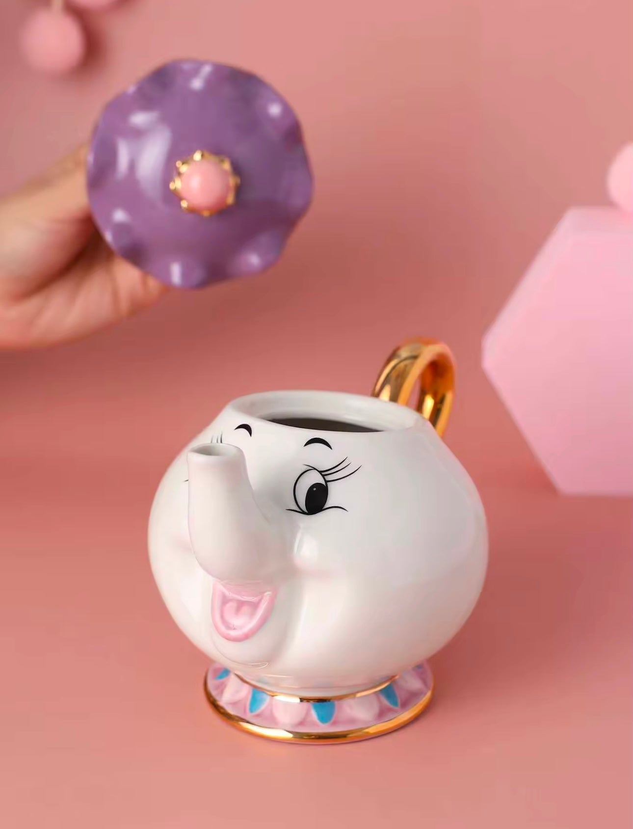 ديزني إبريق الشاي لطيف الكرتون الجمال والوحش أواني القهوة القدح السيدة الأواني كوب فنجان شاي
